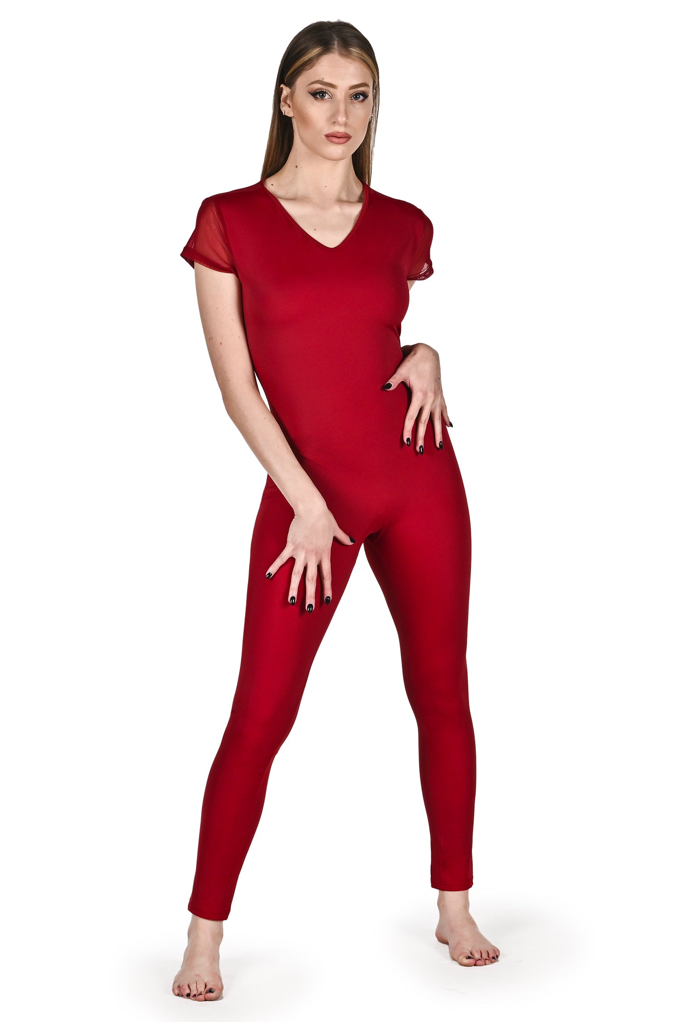 The Tuta danza Scarlet Grace JZP7092 is a versatile and elegant piece, perfect for dancers who want to stand out on any occasion. Made with high-quality fabric, this jumpsuit offers a snug and comfortable fit, ensuring maximum freedom of movement. The design with short sleeves in sheer fabric and a front V-neck harmoniously combines with the wide open back, creating a sophisticated and sensual look. Ideal for rehearsals, shows, and artistic performances.
